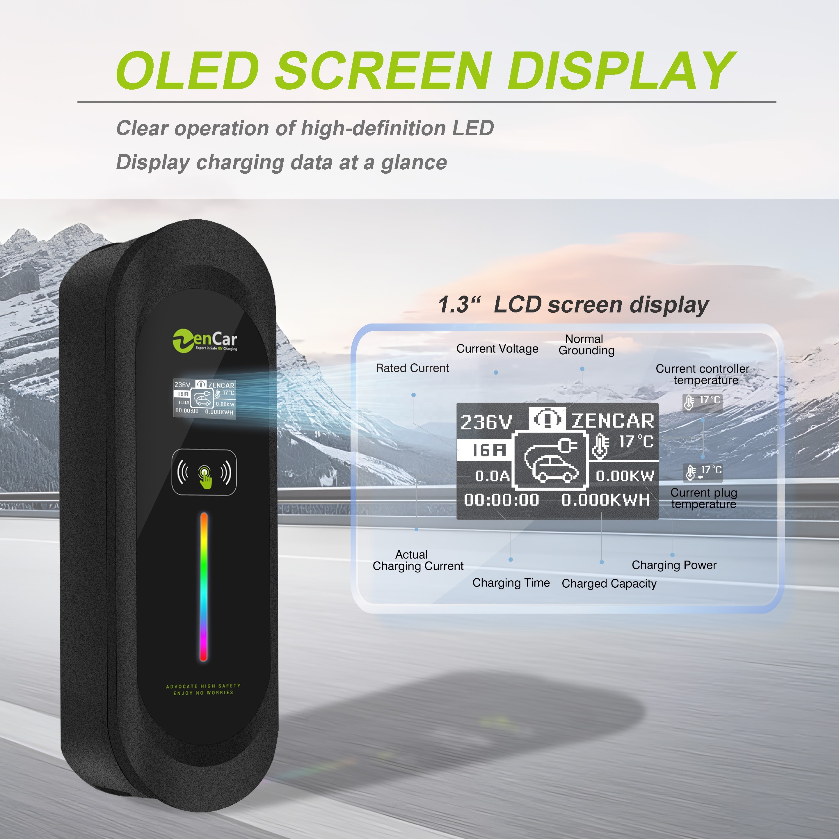 Zencar Model A portable EV charger with adjustable 7kW / 22kW power, available with multiple plug types (Type 2, GBT, and more). Designed for fast, safe, and reliable charging anywhere, with durable build quality and easy everyday use.